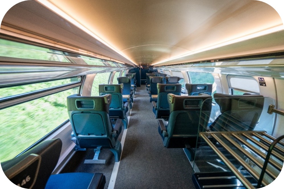 Ces nouveaux matériels plus confortables bénéficient par ailleurs d’un très haut niveau de confort et de services à bord, qui améliorent les conditions de voyage pour les usagers :