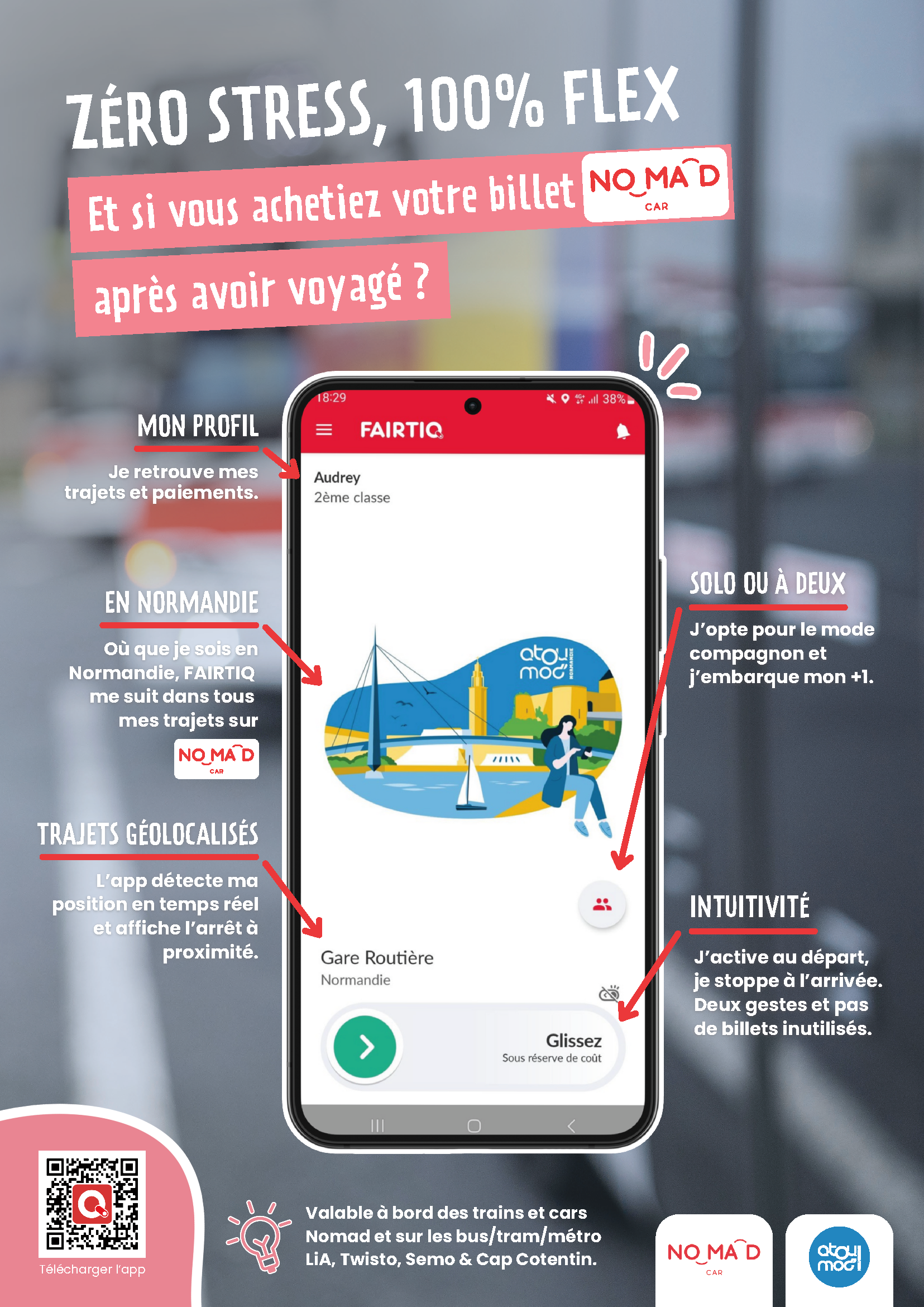 NOUVEAU : la solution de paiement FAIRTIQ est désormais disponible sur l'ensemble du réseau NOMAD Car (à l'exception des circuits scolaires)