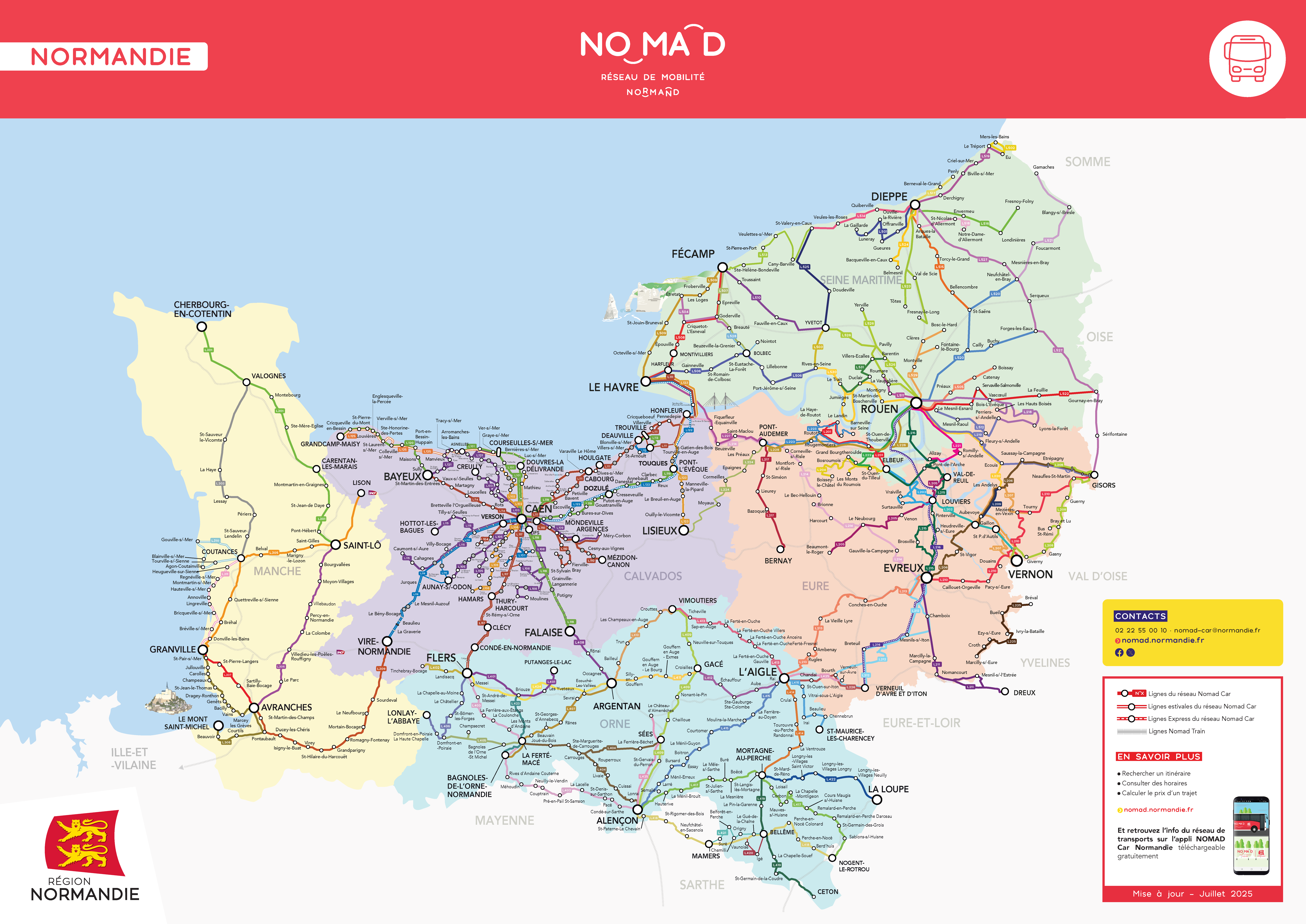 All Normandy transport (excluding urban transport) has been merged since 1 January 2020 under a single brand: NOMAD, the mobility network throughout Normandy.
